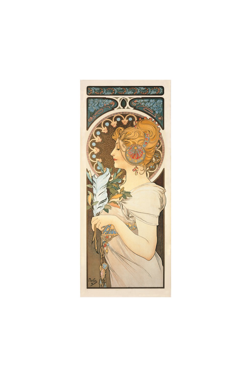 This panel was the first of the Primrose and Feather panels to be published. The geometrical mosaic motif contrasts with the floral ornamental circle inspired by nature in the companion piece Primrose. A version of this design was used to advertise the J. Royer printing company.