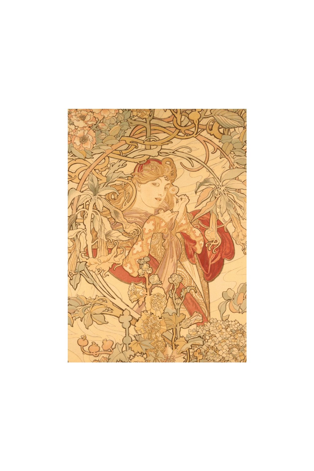 This poster depicts a gentle young woman holding a single daisy, her tranquil expression and flowing lines capturing the elegance and romantic idealism characteristic of Mucha’s Art Nouveau style.